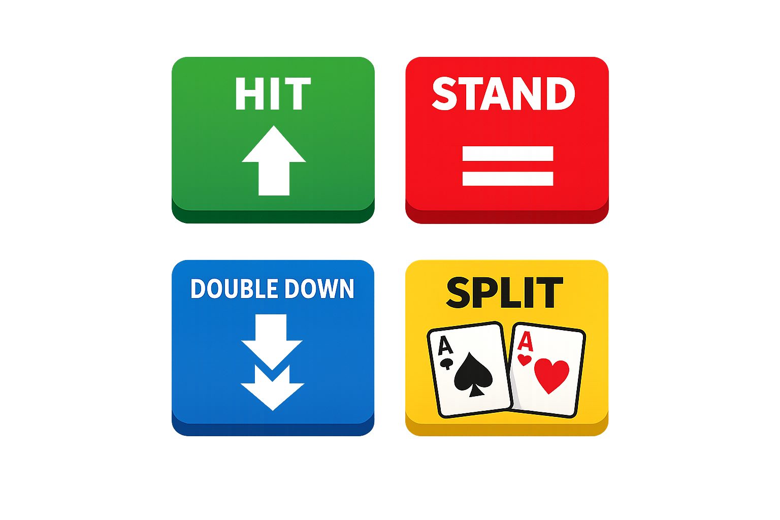 Dette er den vigtigste regel i enhver Blackjack strategi. To Esser er en svag hånd (12), men splittet giver de dig to chancer for at ramme 21. To 8'ere giver 16 – den værste hånd i Blackjack. Ved at splitte dem forvandler du én elendig hånd til to potentielt gode hænder.